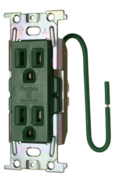 明工社製のML医用接地埋込ダブルコンセント(C形)(緑)ML1282T3Mです。