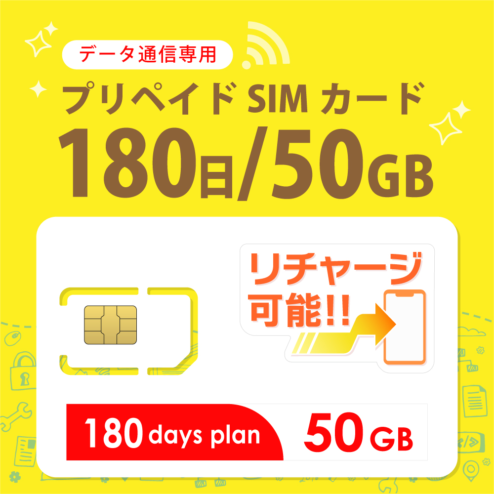 【送料無料】日本専用Docomo MVNO 50GB/180日 データ通信用SIMカード
