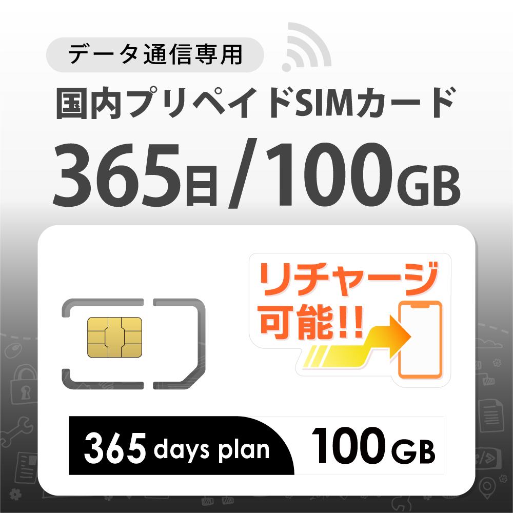 【送料無料】日本専用Docomo MVNO 100GB/365日 データ通信用SIMカード [365/100GB]