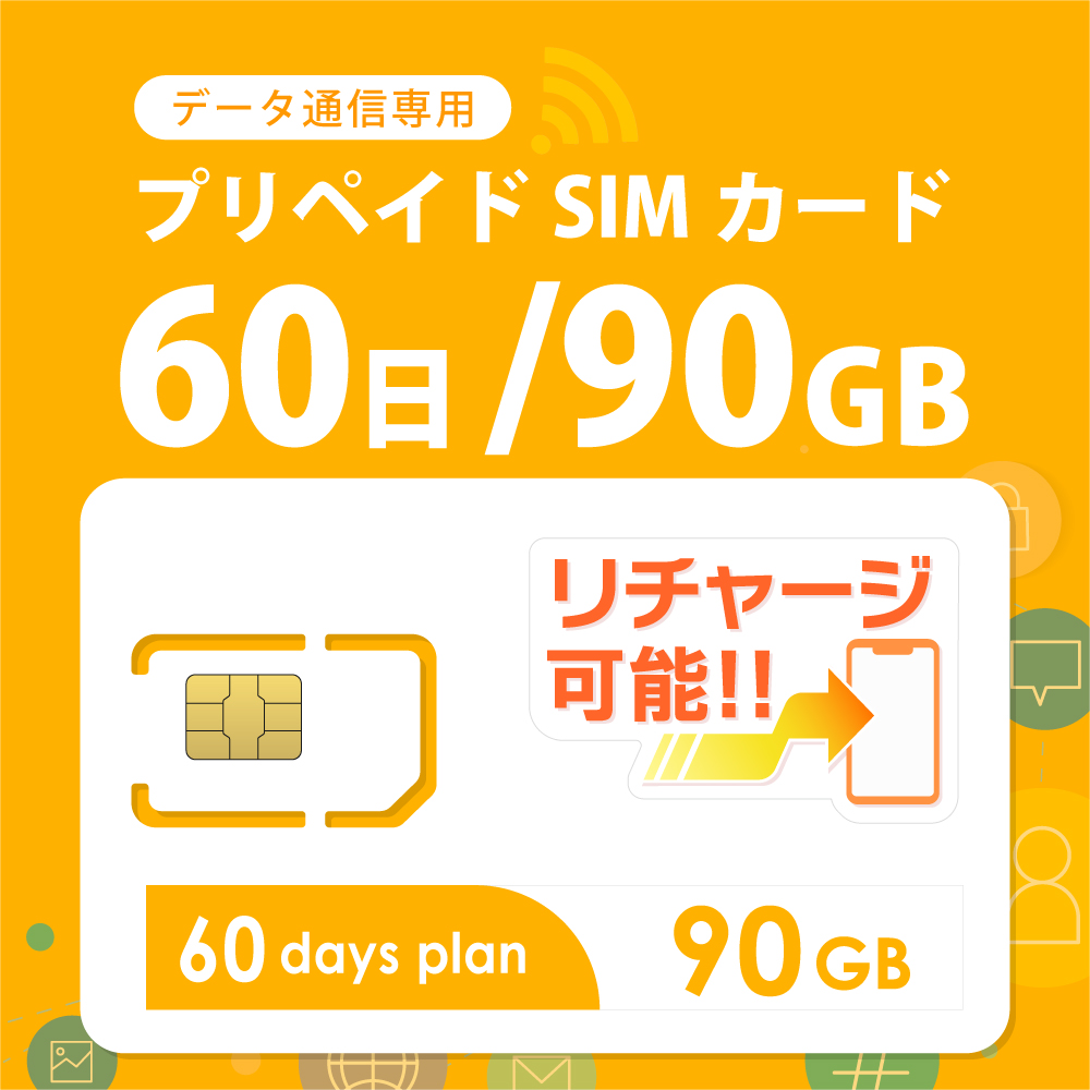 【送料無料】日本専用Docomo MVNO 90GB/60日 データ通信用SIMカード